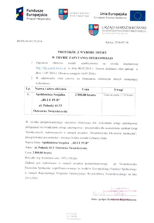 Zapytanie ofertowe, którego przedmiotem jest świadczenie usługi cateringowej – poczęstunku dla uczestników spotkań Grup Tematycznych, realizowanych w ramach projektu „Świętokrzyska Ekonomia Społeczna”.